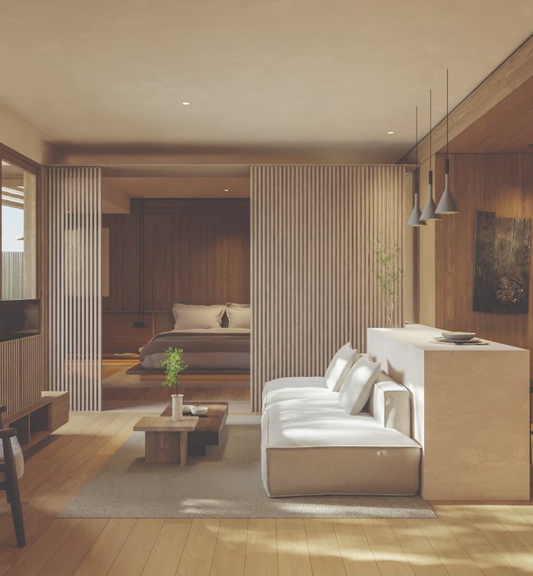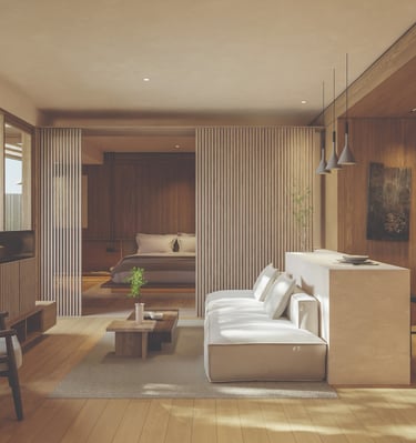 1 Bedroom Residence - Canggu - A thoughtfully designed one-bedroom apartment in Canggu, where wellness-focused architecture, natural materials, and tranquil water features create a restorative living experience.