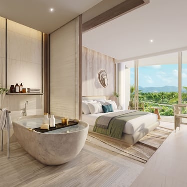 Tucked away on Phuket’s picturesque west coast, Bang Tao Beach is a stunning 6-kilometer stretch of soft golden sand lapped by the turquoise waters of the Andaman Sea. Known for its blend of serene natural beauty and upscale charm, Bang Tao offers a more refined and relaxed escape compared to the island’s busier tourist hubs.