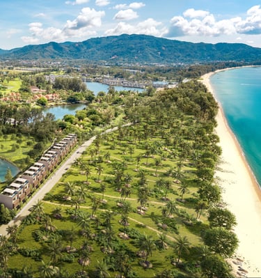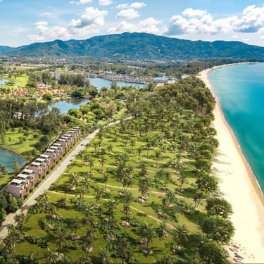 Tucked away on Phuket’s picturesque west coast, Bang Tao Beach is a stunning 6-kilometer stretch of soft golden sand lapped by the turquoise waters of the Andaman Sea. Known for its blend of serene natural beauty and upscale charm, Bang Tao offers a more refined and relaxed escape compared to the island’s busier tourist hubs.