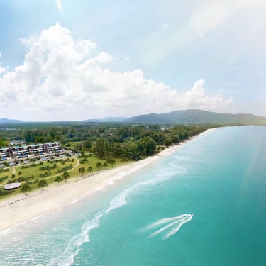 Tucked away on Phuket’s picturesque west coast, Bang Tao Beach is a stunning 6-kilometer stretch of soft golden sand lapped by the turquoise waters of the Andaman Sea. Known for its blend of serene natural beauty and upscale charm, Bang Tao offers a more refined and relaxed escape compared to the island’s busier tourist hubs.