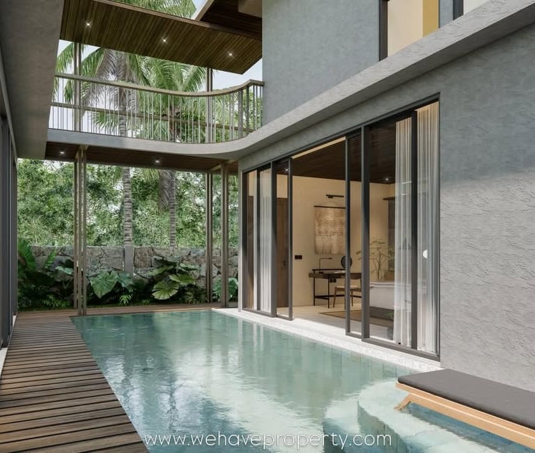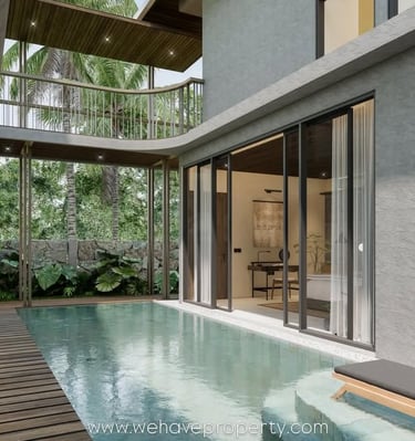 4 Bedroom Villa - Jimbaran - A sophisticated 4-bedroom villa in Jimbaran , blending contemporary tropical architecture with natural textures, featuring double-height ceilings & a private sanctuary