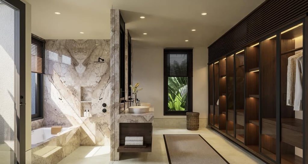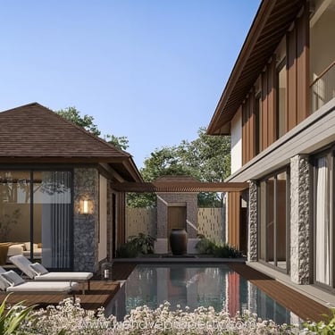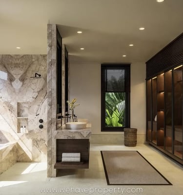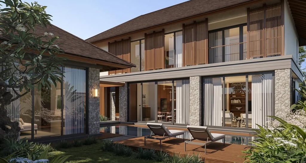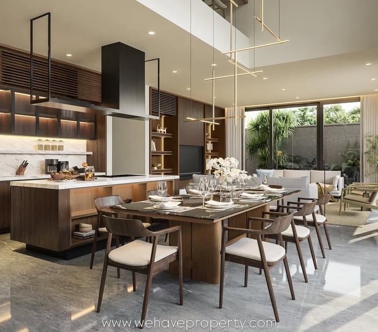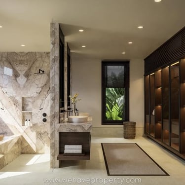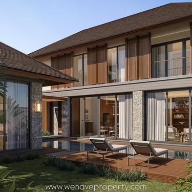 5 Bedroom Villa - Jimbaran - A stunning 5-bedroom tropical contemporary villa blending warm wood finishes, natural stone, double-height spaces, & seamless outdoor living