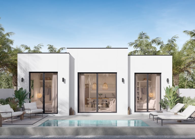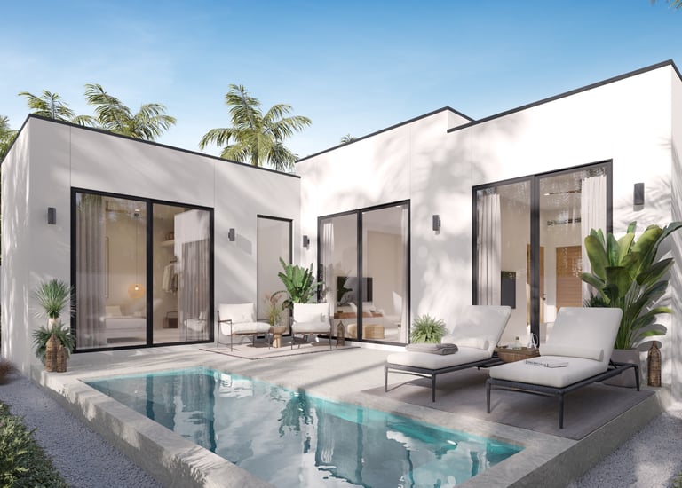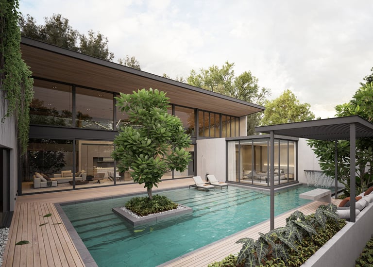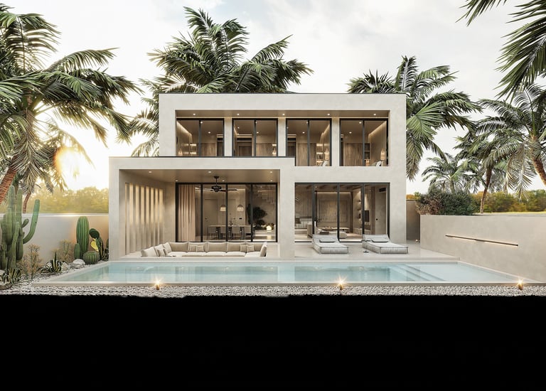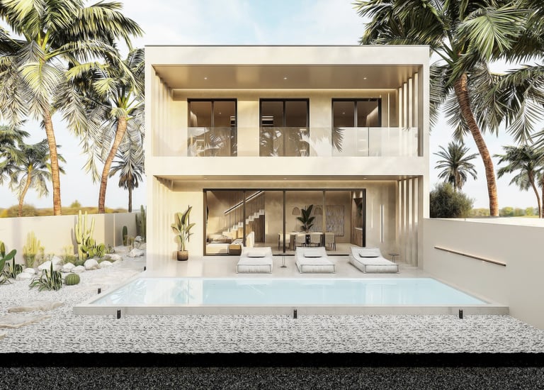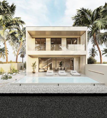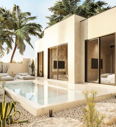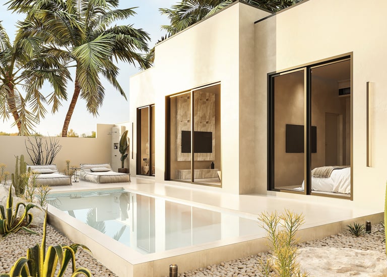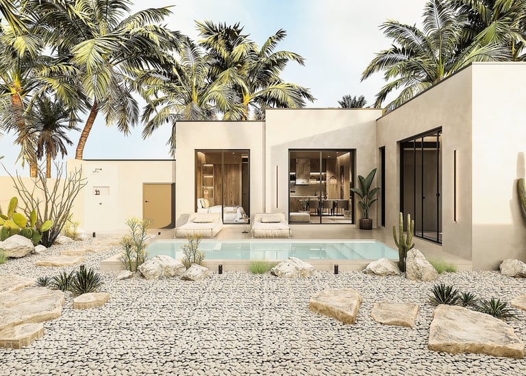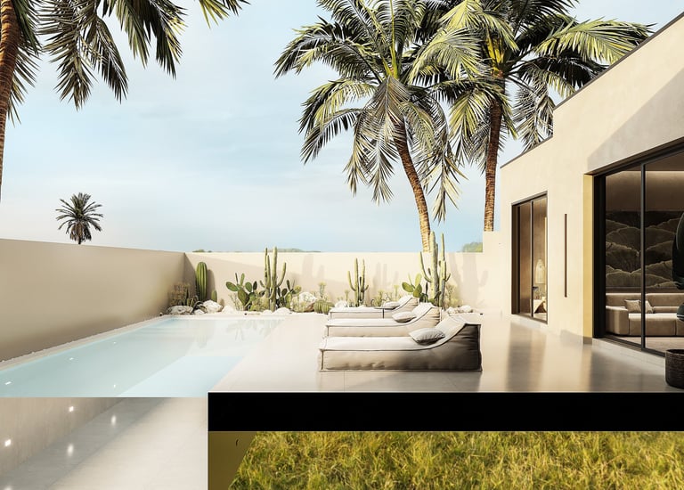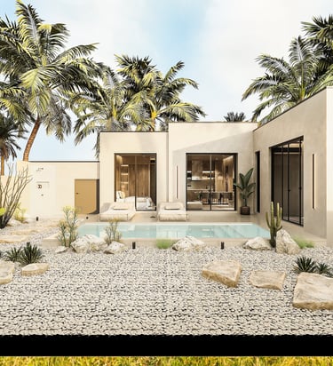 Modern Desert Villa with Serene Oasis Where Minimalist Luxury Meets Nature's Raw Beauty.